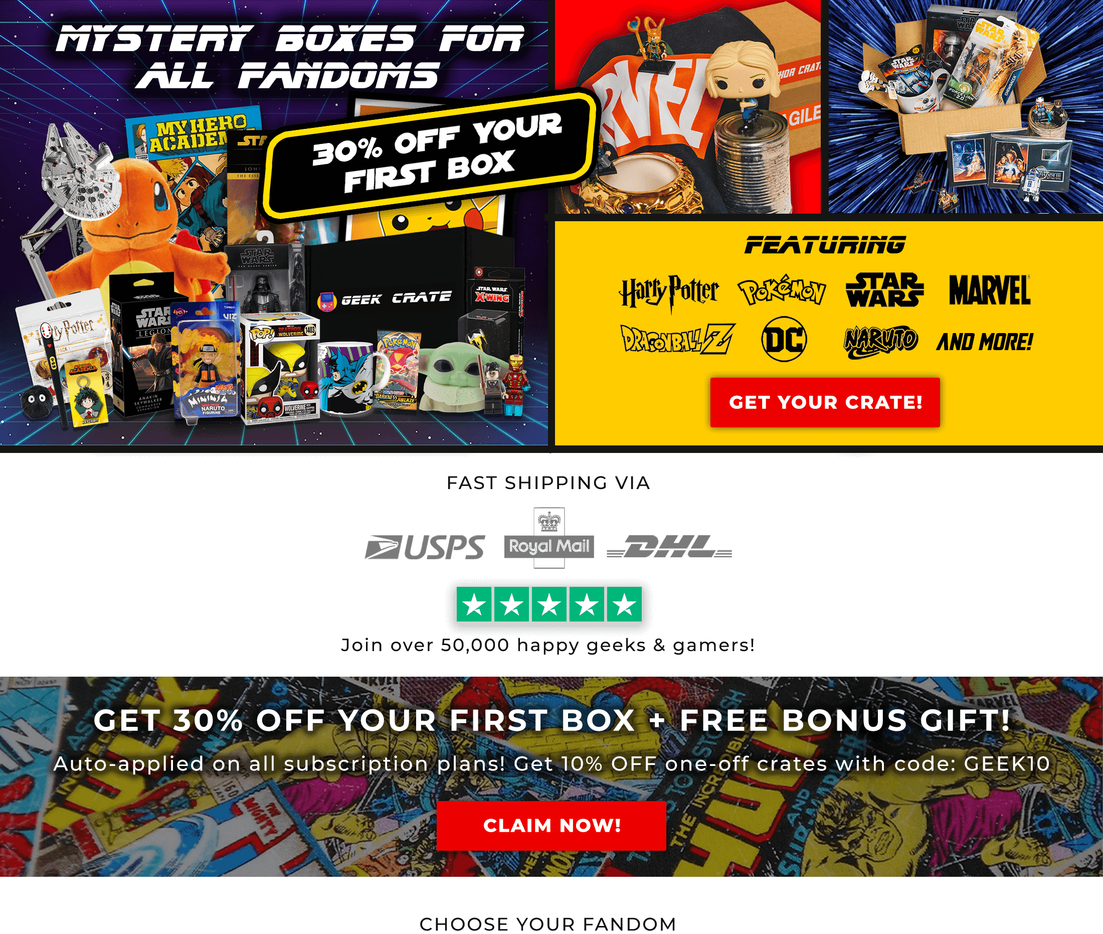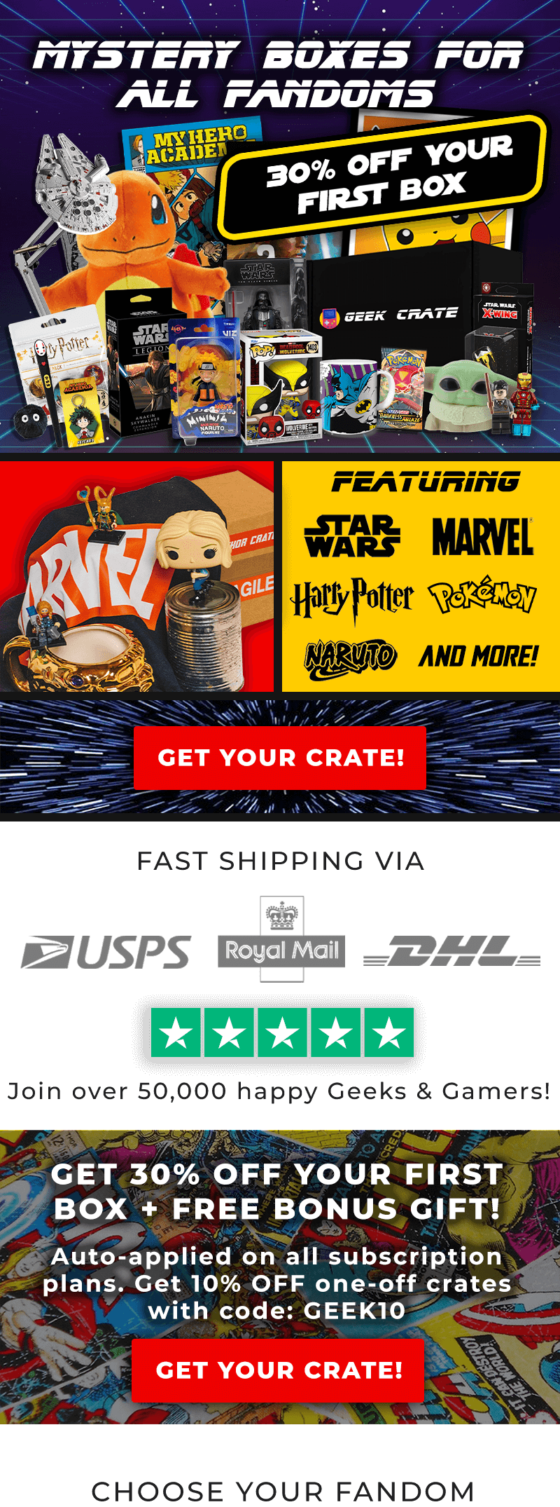 Your box ships in just 1-3 days! Enjoy your Geek Crate full of awesome merchandise and collectibles from your favourite fandoms!