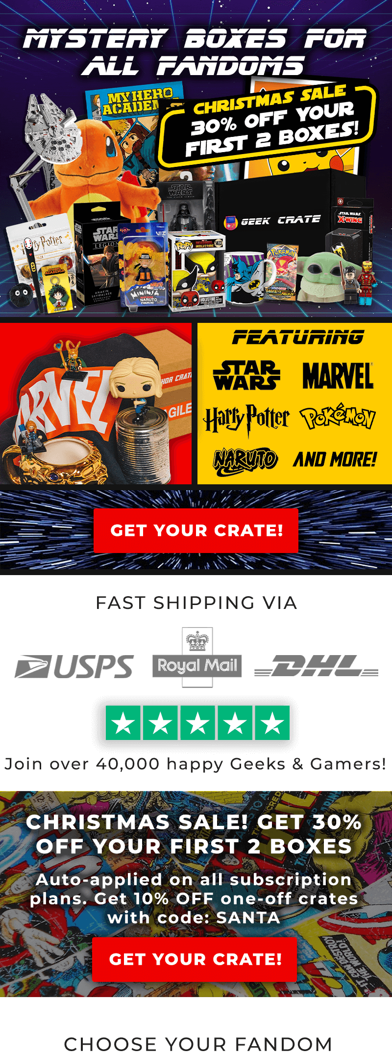 Your box ships in just 1-3 days! Enjoy your Geek Crate full of awesome merchandise and collectibles from your favourite fandoms!